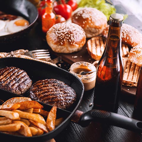 All burgers include hand cut fries. Upgrade to a premium fries or salads.